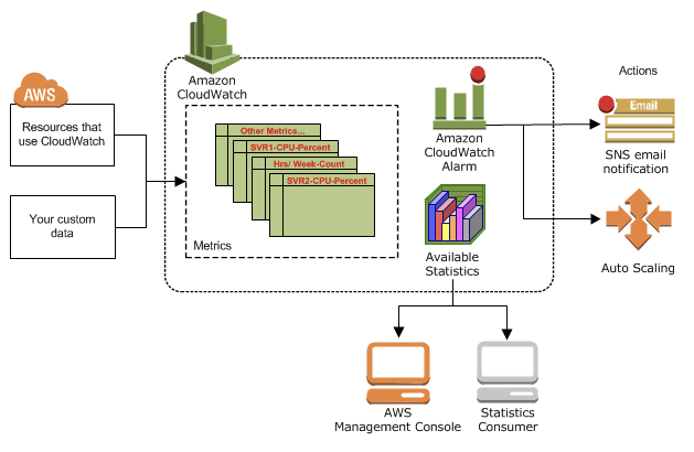 - CloudWatch에서는 사용자 지정 데이터를 통해 제공되었거나 다른 AWS 서비스에서 CloudWatch에 제공한 지표 데이터 요소를 기반으로 통계를 제공