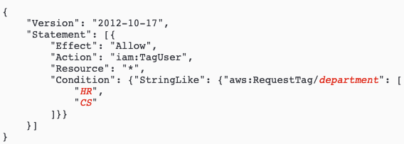 - Ex. department=HR 또는 department=CS 태그만을 사용하는 사용자 태그 지정을 허용