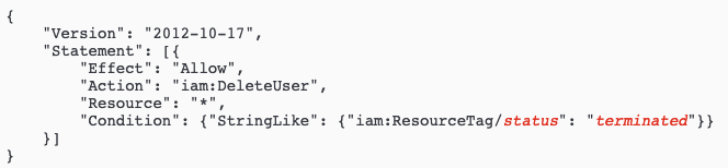 - Ex. status=terminated 태그가 지정된 사용자의 삭제를 허용
