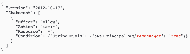 - Ex. tagManager=true 태그가 지정된 사용자가 IAM 사용자, 그룹 또는 역활을 관리