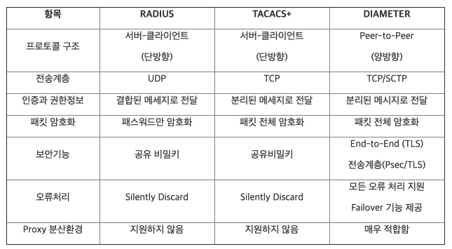 DIAMETER AAA 메시지 라우팅 및 AAA 프로토콜간 비교