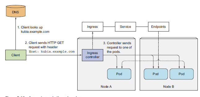 컨트롤러는 자신과 연동된 인그레스 리소스에게 들어온 트래픽에 대한 경로 정보를 요청하고 인그레스 리소스는 자신에게 정의된 Rule 대로 연동된 서비스에게 다시 경로 요청 후 서비스에 등록된 포드의 엔드포인트를 받게되면 컨트롤러가 전달받은 엔드포인트로 트래픽을 전달하는 방식이다.