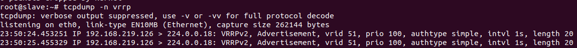 # vim /etc/keepalived/keepalived.conf (Slave)