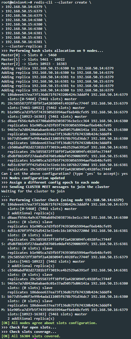 각 노드별 slot이 분배된 것을 확인할 수 있다.