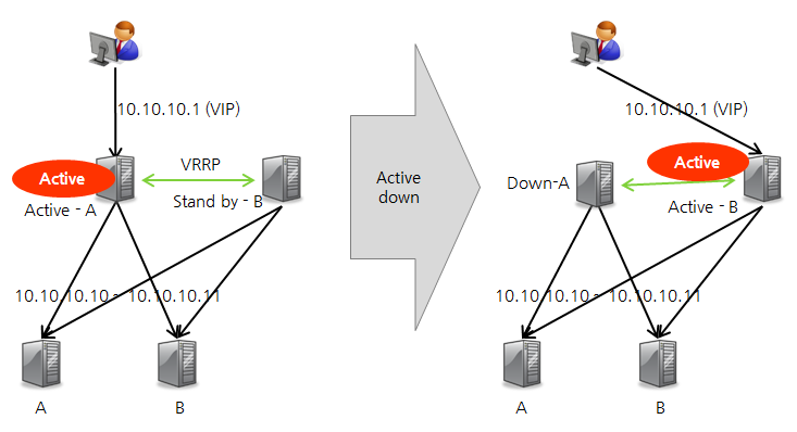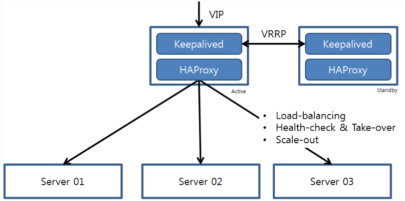 간단하게 설명하면 VIP (가상 IP)를 기반으로 작동하며 Master 노드를 모니터링하다가 해당 노드에 장애가 발생했을시 Stanby 서버로 Failover되도록 지원한다.