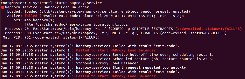 Master에서 확인해보니 아래와 같이 HAProxy Service가 실패하였다.
