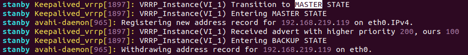 Active Node가 Poweroff 되자 Keepalived 데몬이 VIP (192.168.219.119) 를 Stanby Node에 인계하여 FailOver를 하였다.